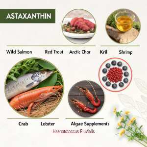 Daily dietary intake from food is typically low (0.5–3 mg in seafood-heavy diets), so most clinical studies use astaxanthin supplements (4–12 mg/day) to achieve therapeutic levels. Consuming astaxanthin-rich foods (especially wild salmon) provides synergistic nutrients (omega-3s, protein, vitamin D) and is ideal for long-term support.