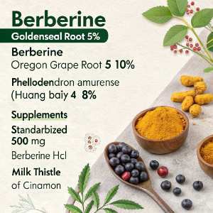 - Supplements — standardized extracts (usually 500 mg berberine HCl per capsule, often combined with milk thistle or cinnamon for synergy)