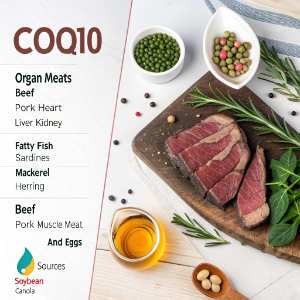 - Supplements — ubiquinol (active form) or ubiquinone (300–600 mg/day in studies; ubiquinol preferred for better absorption in older adults)